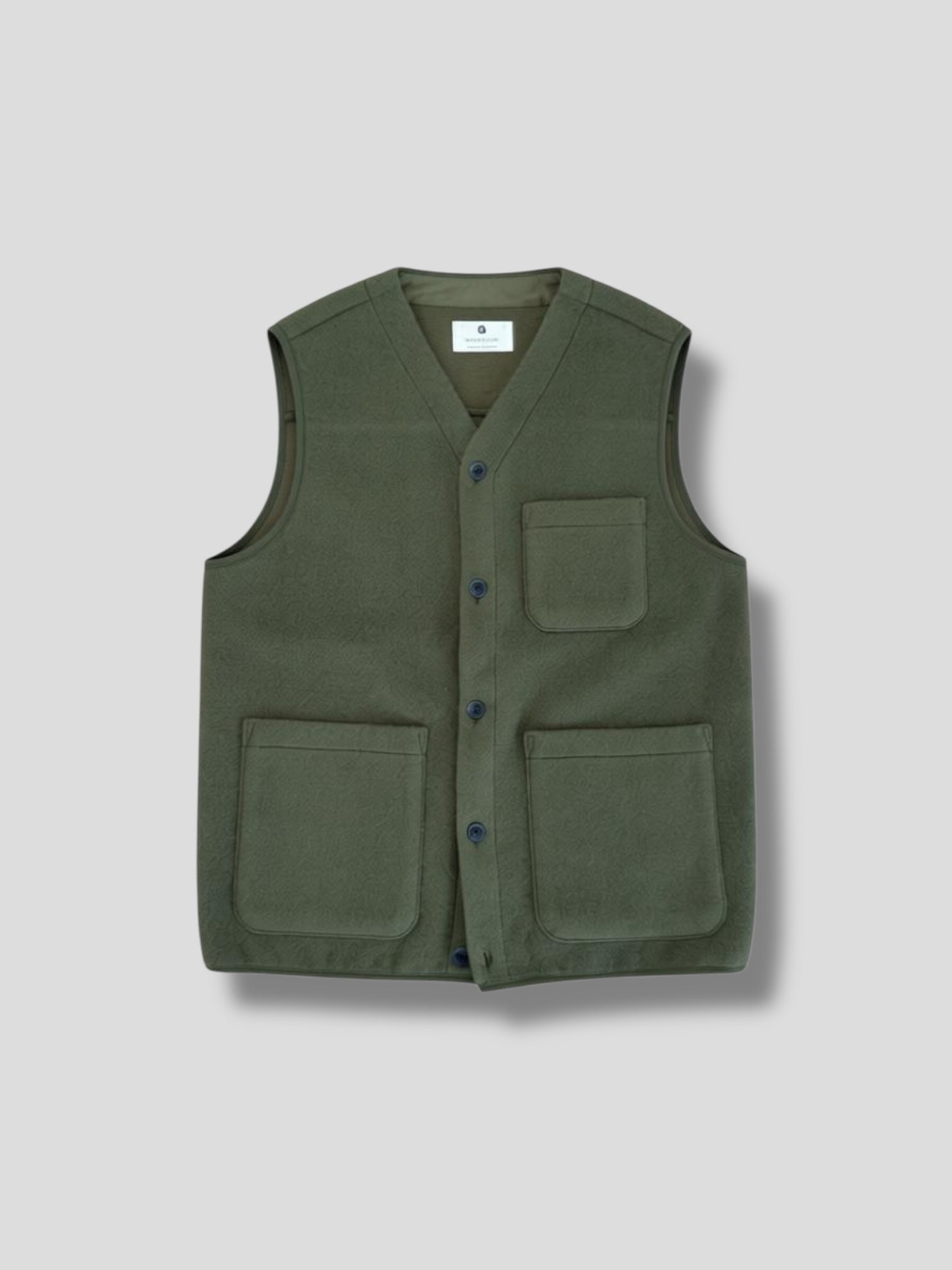 Il di gilet Anerkjendt Akrasmus Boiled Wool – Forest Night unisce stile contemporaneo e comfort, ideale per i mesi freddi. Realizzato in un misto lana-poliestere (50% lana, 50% poliestere), offre una sensazione calda e confortevole, mantenendo al tempo stesso un profilo elegante e moderno.