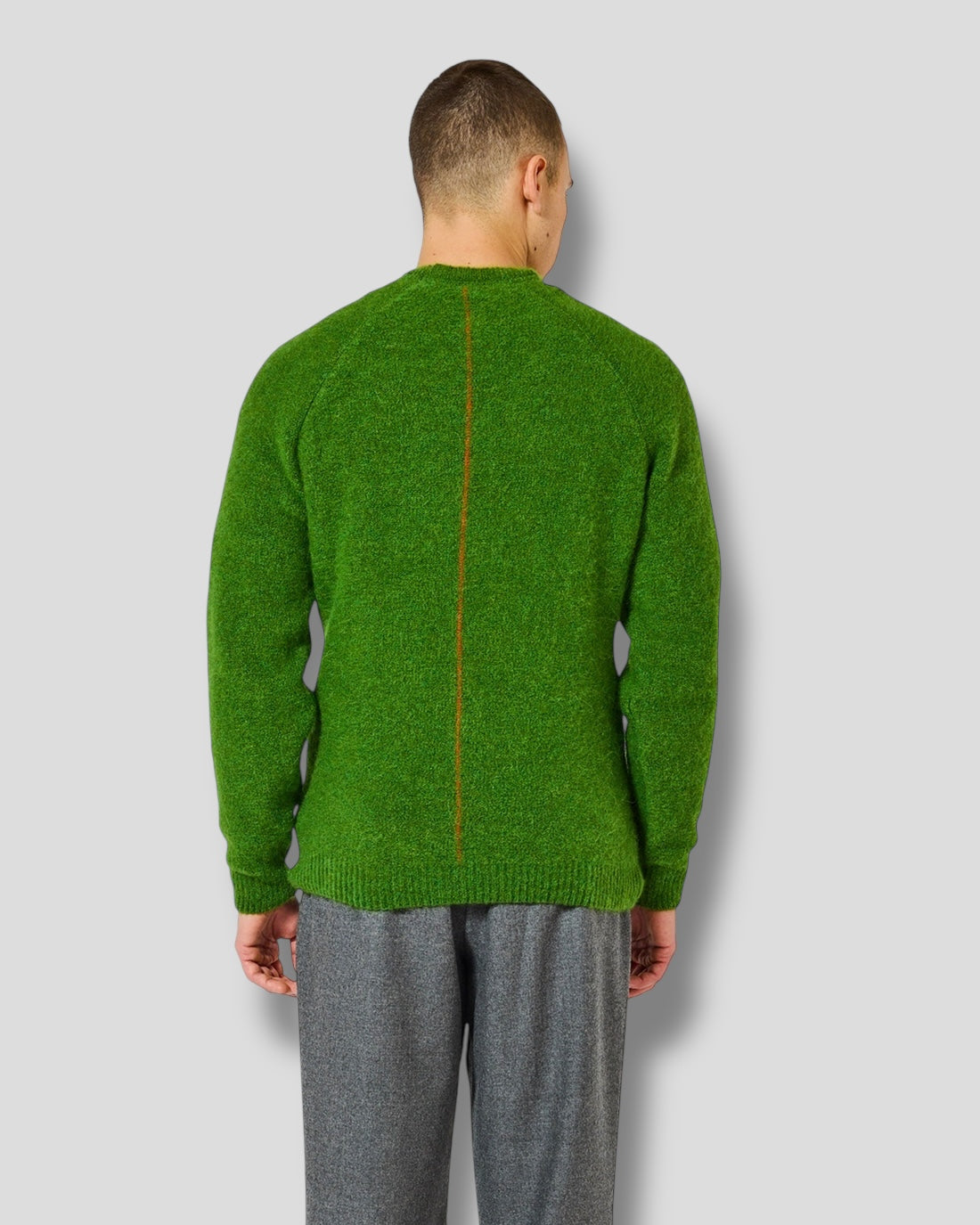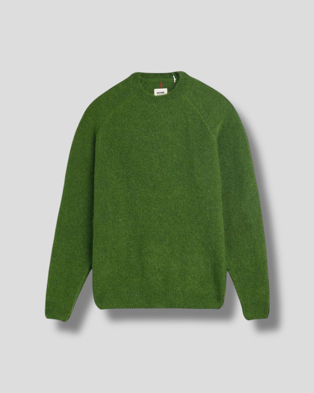 Maglia girocollo regular fit con maniche raglan. Il verde Lush evoca freschezza e naturalezza; la impuntura rossa sul dorso firma l’identità Homecore.