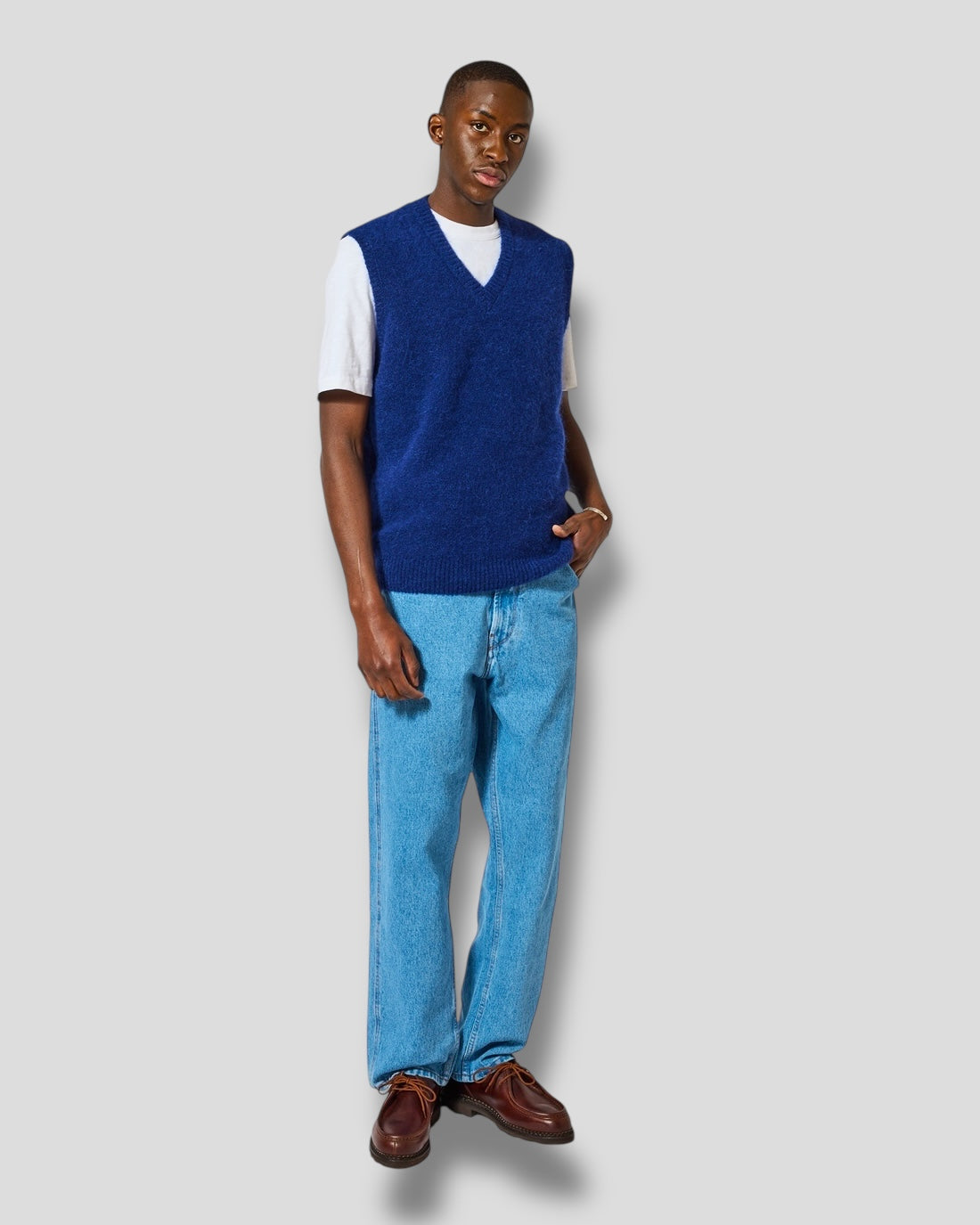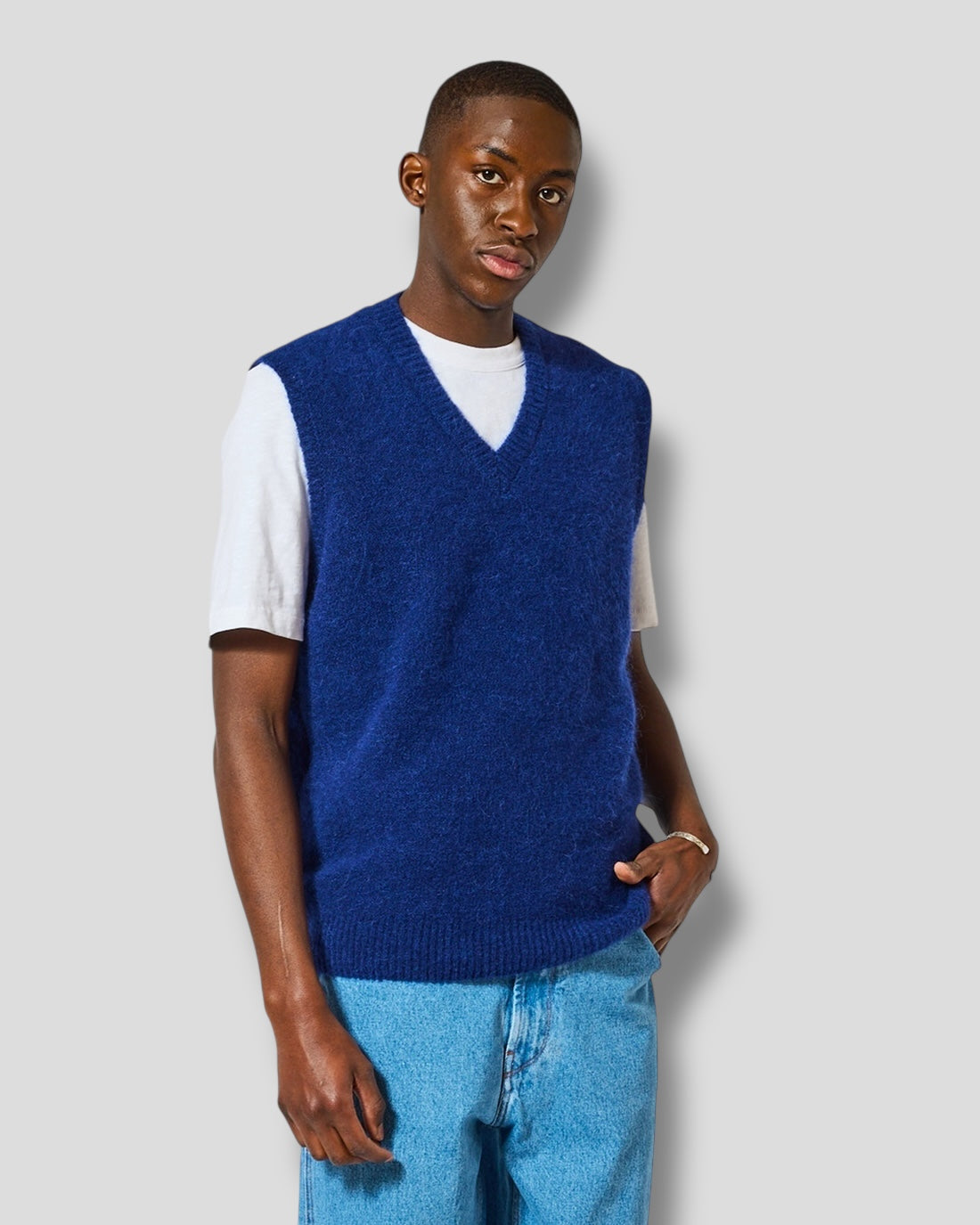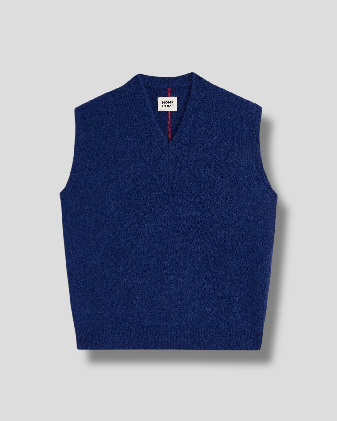 Il Baby Firas è un gilet in maglia fine con scollo a V e fit dritto, arricchito dal nastro rosso iconico Homecore.