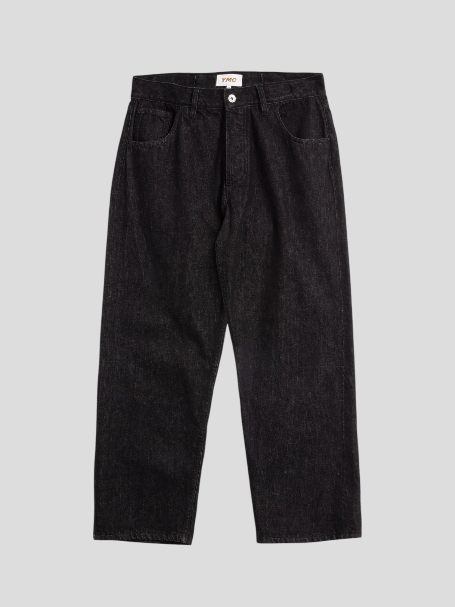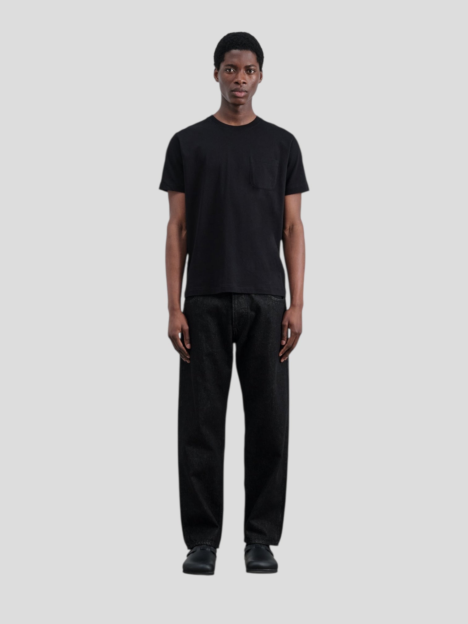 Jeans in denim nero lavato dal taglio contemporaneo. La vestibilità relaxed e la linea dritta li rendono un capo versatile, perfetto per un look urbano e casual.