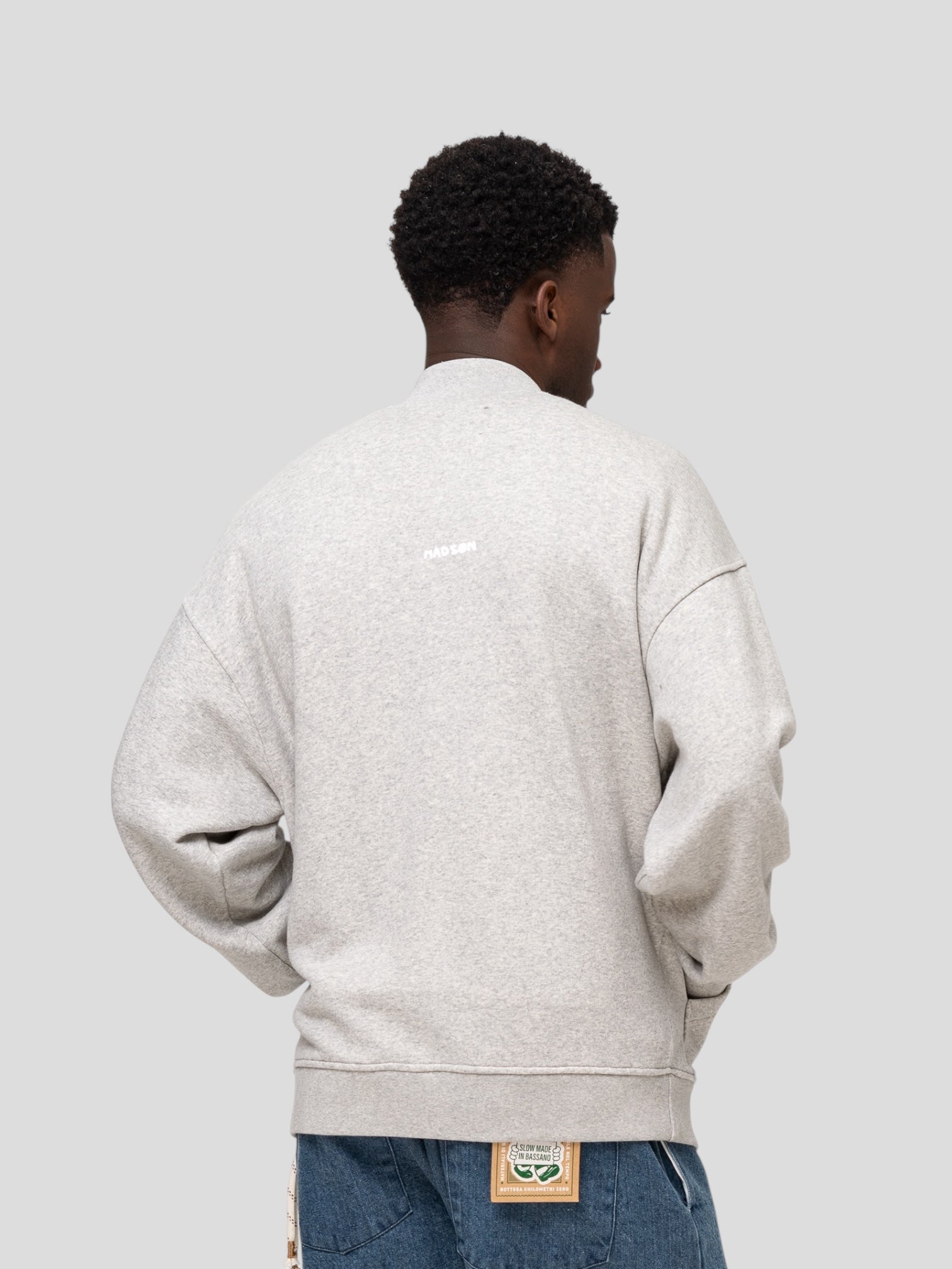 Bomber Felpa dal taglio minimal e contemporaneo, realizzata in cotone riciclato 100%. Il tessuto melange e la stampa “Madsøn” posizionata sul retro ne definiscono lo stile urbano e pulito.