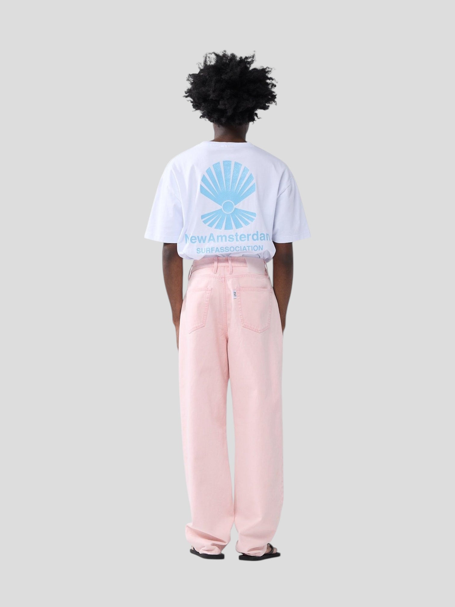 Il 252 Denim in Rosebloom è un capo unisex che combina linee pulite e carattere deciso. Un fit relaxed con vita media e gamba dritta per un look equilibrato, contemporaneo e trasversale. Realizzato in denim 100% cotone, offre comfort e durata, con dettagli firmati New Amsterdam Surf Association: bottone in metallo brandizzato, patch gommata sul retro e ricamo discreto sopra la tasca sinistra.