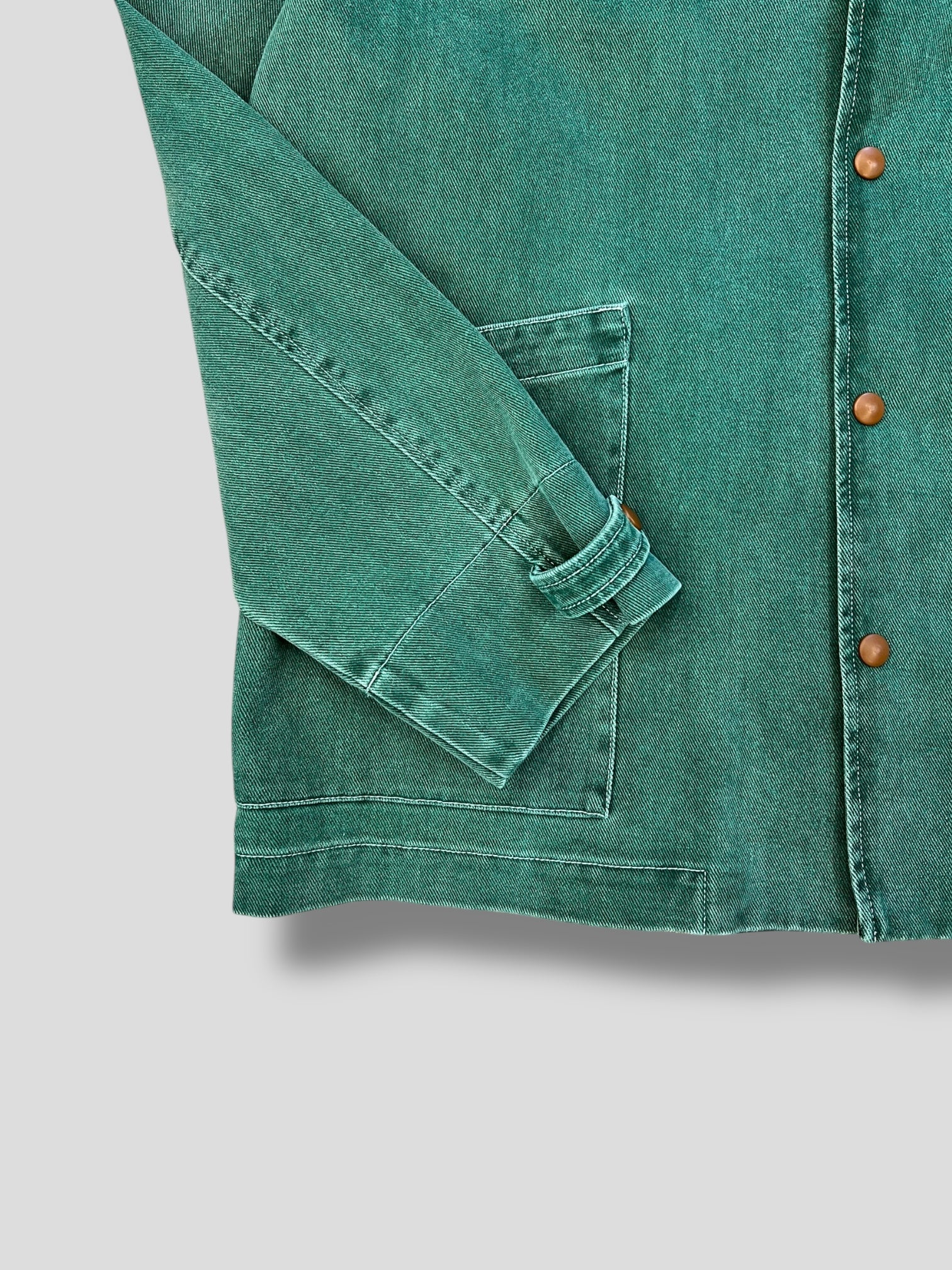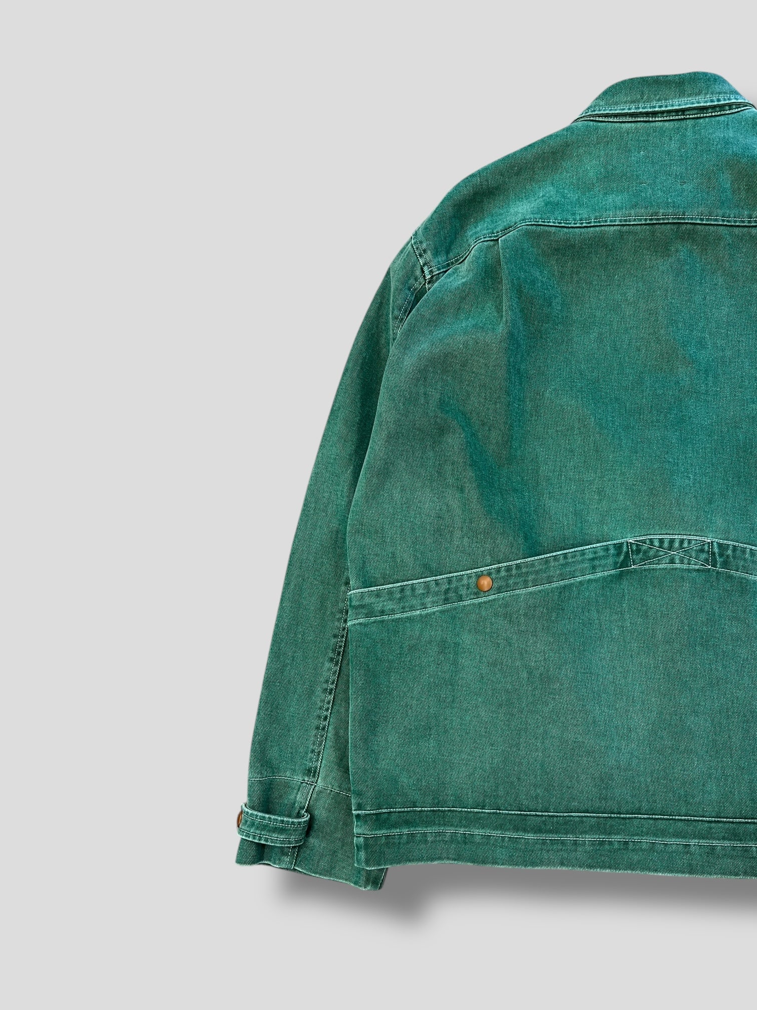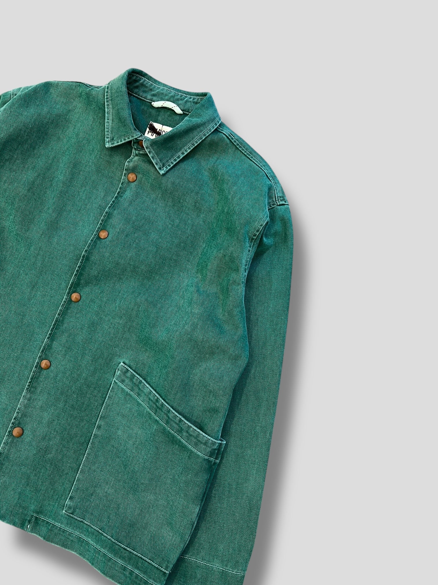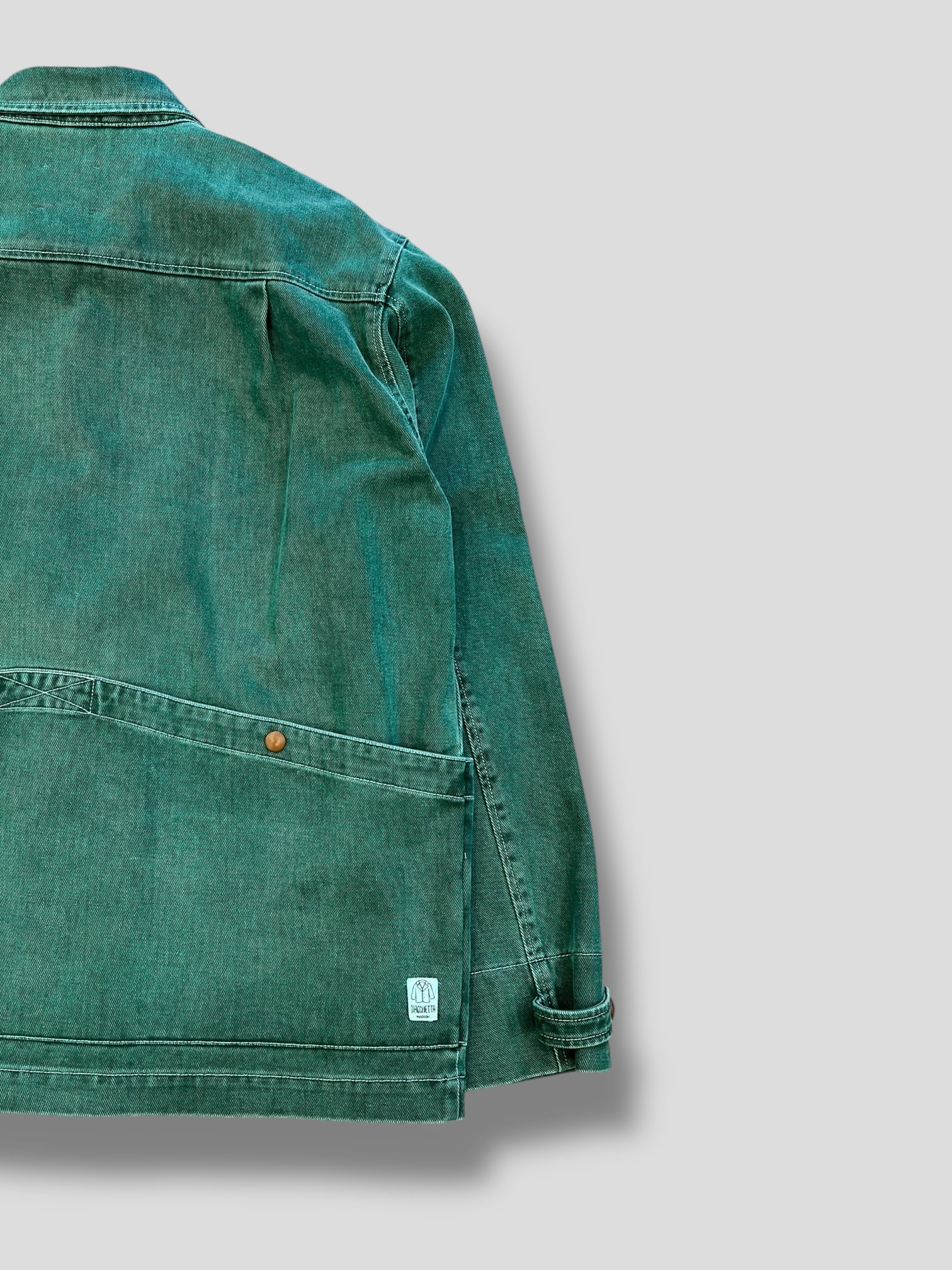 Giacca multi-tasche dal design urbano e contemporaneo, realizzata in cotone Macugnaga placcato per una superficie elegante e resistente. Il colore verdone dona carattere mantenendo uno stile discreto e versatile.