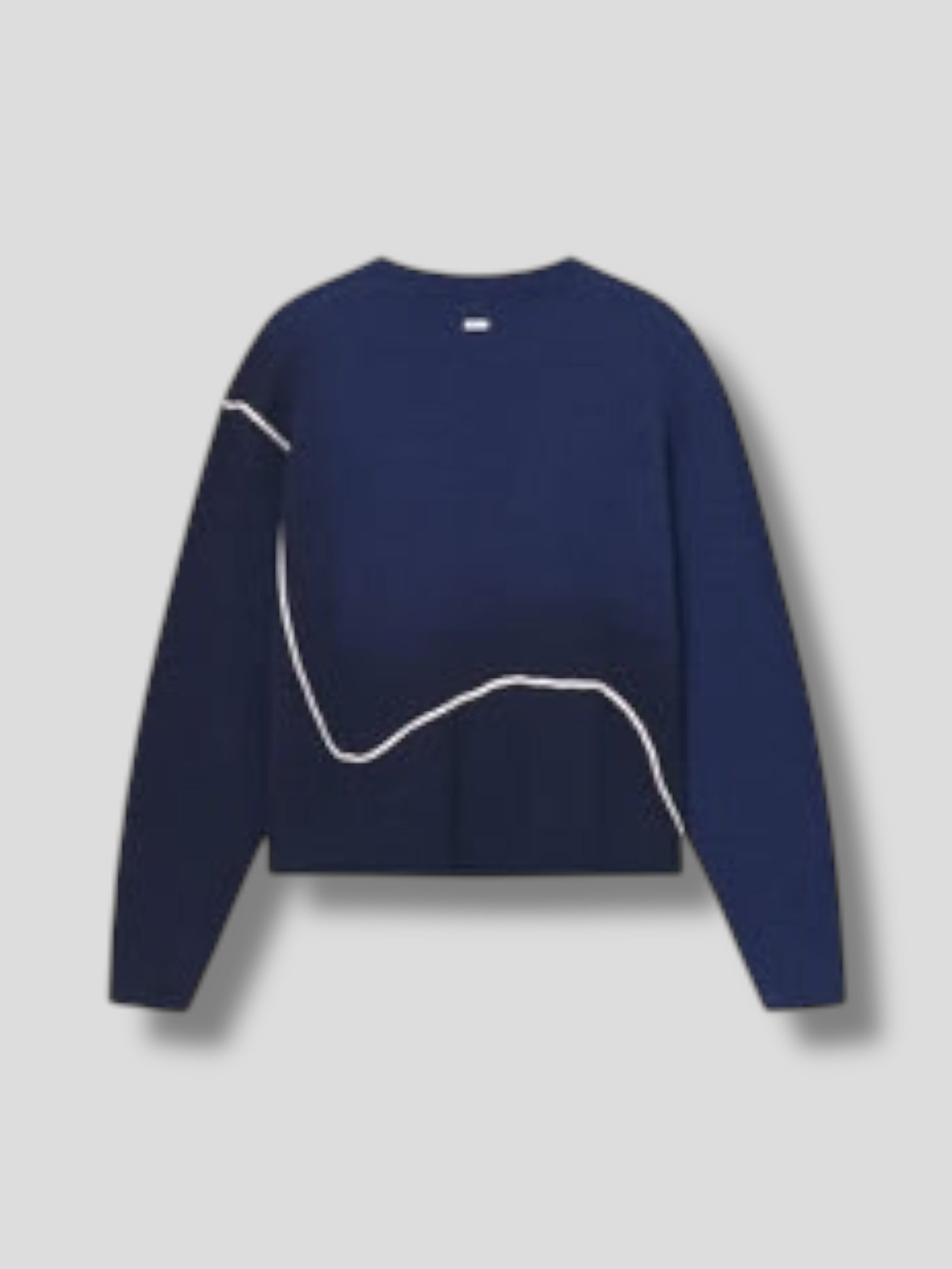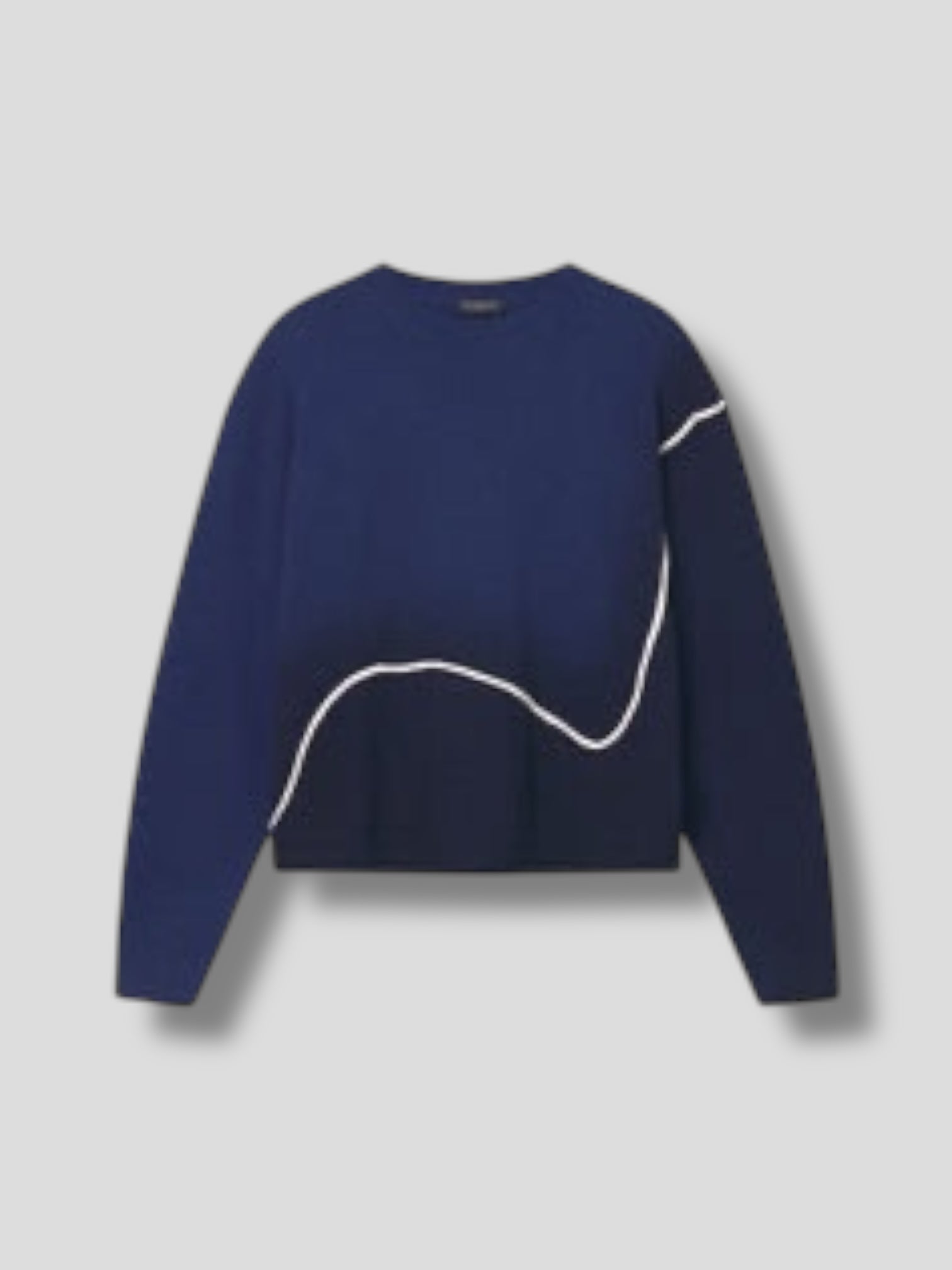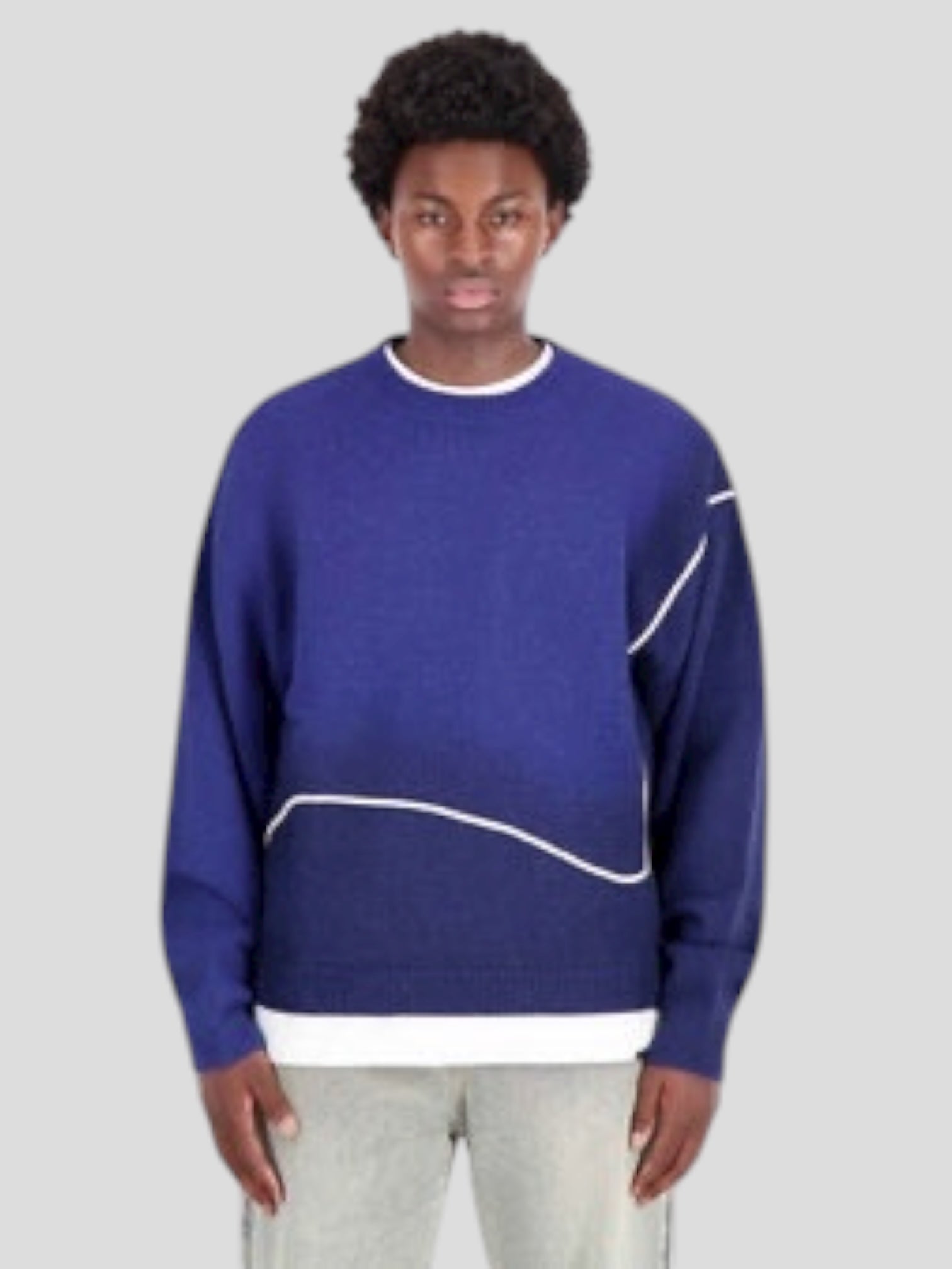 Il Leocadia Sweater è una maglia tie-dye navy mosso, cuciture a contrasto e silhouette che non passa inosservata.