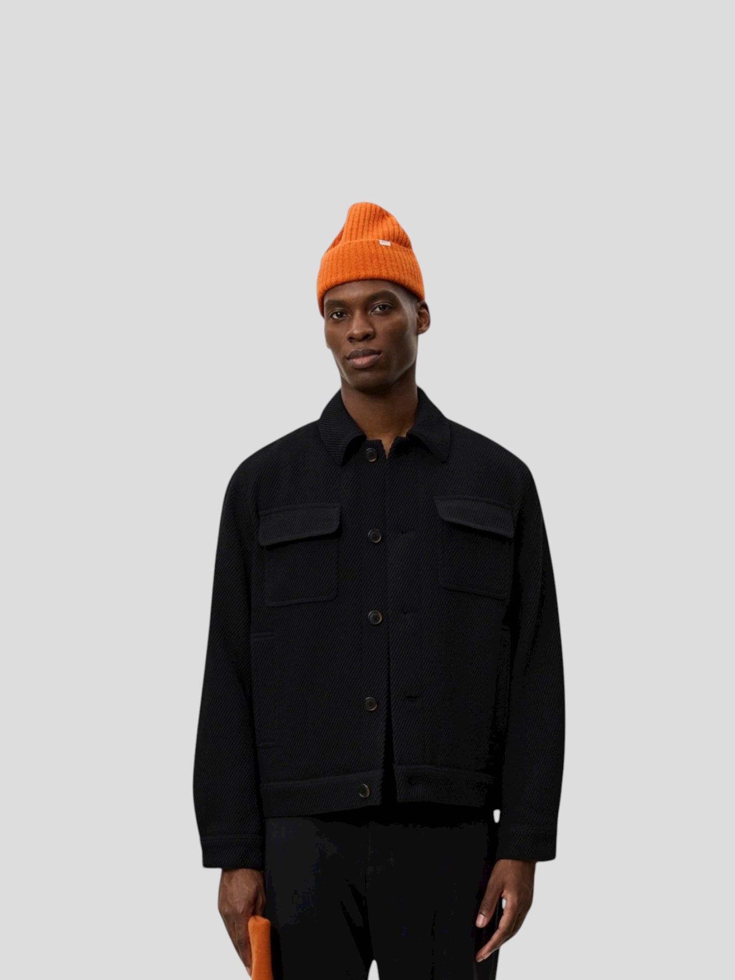 - Dettagli: colletto classico, chiusura frontale con bottoni a pressione, tasche applicate sul petto e finiture pulite.