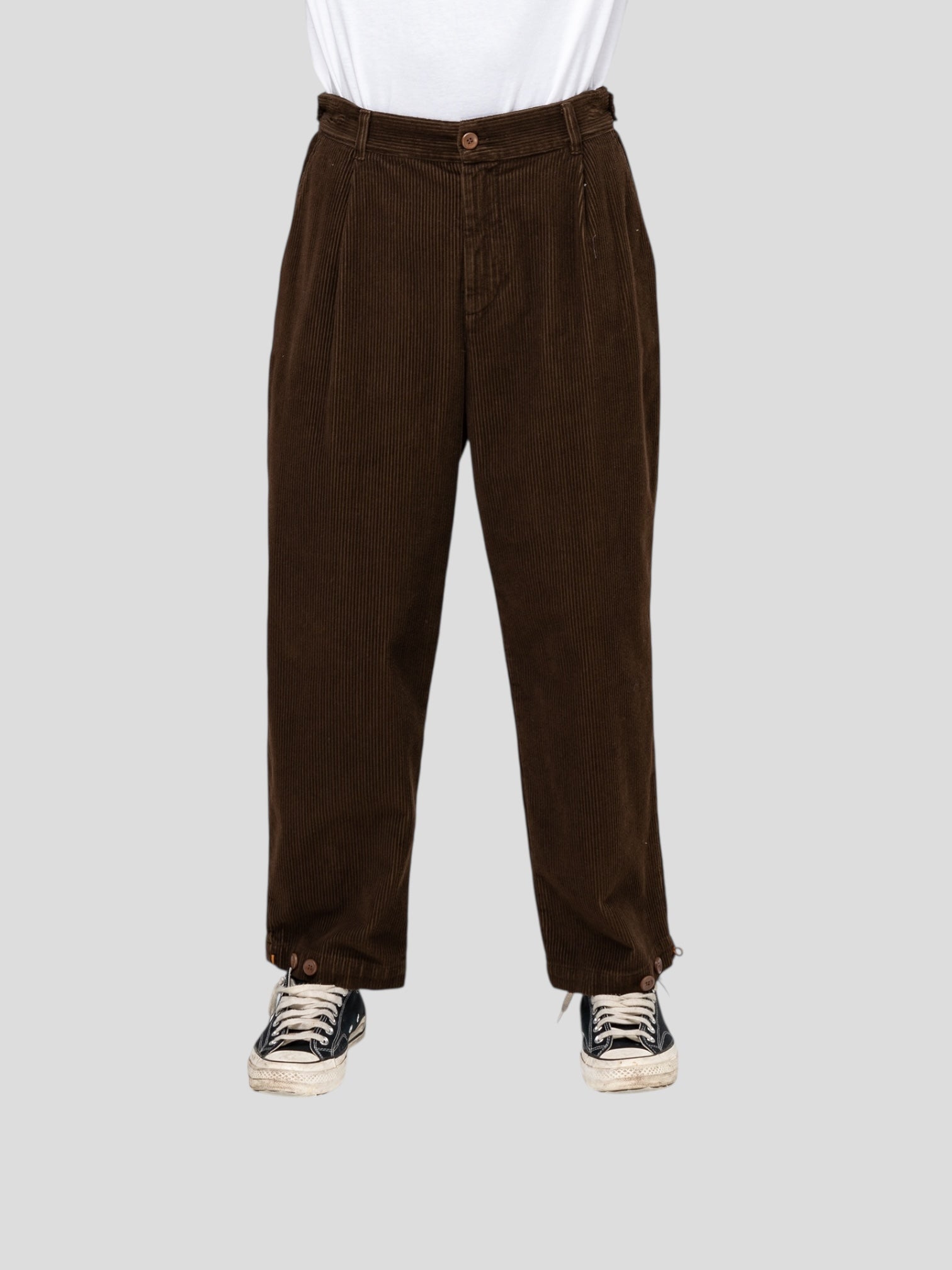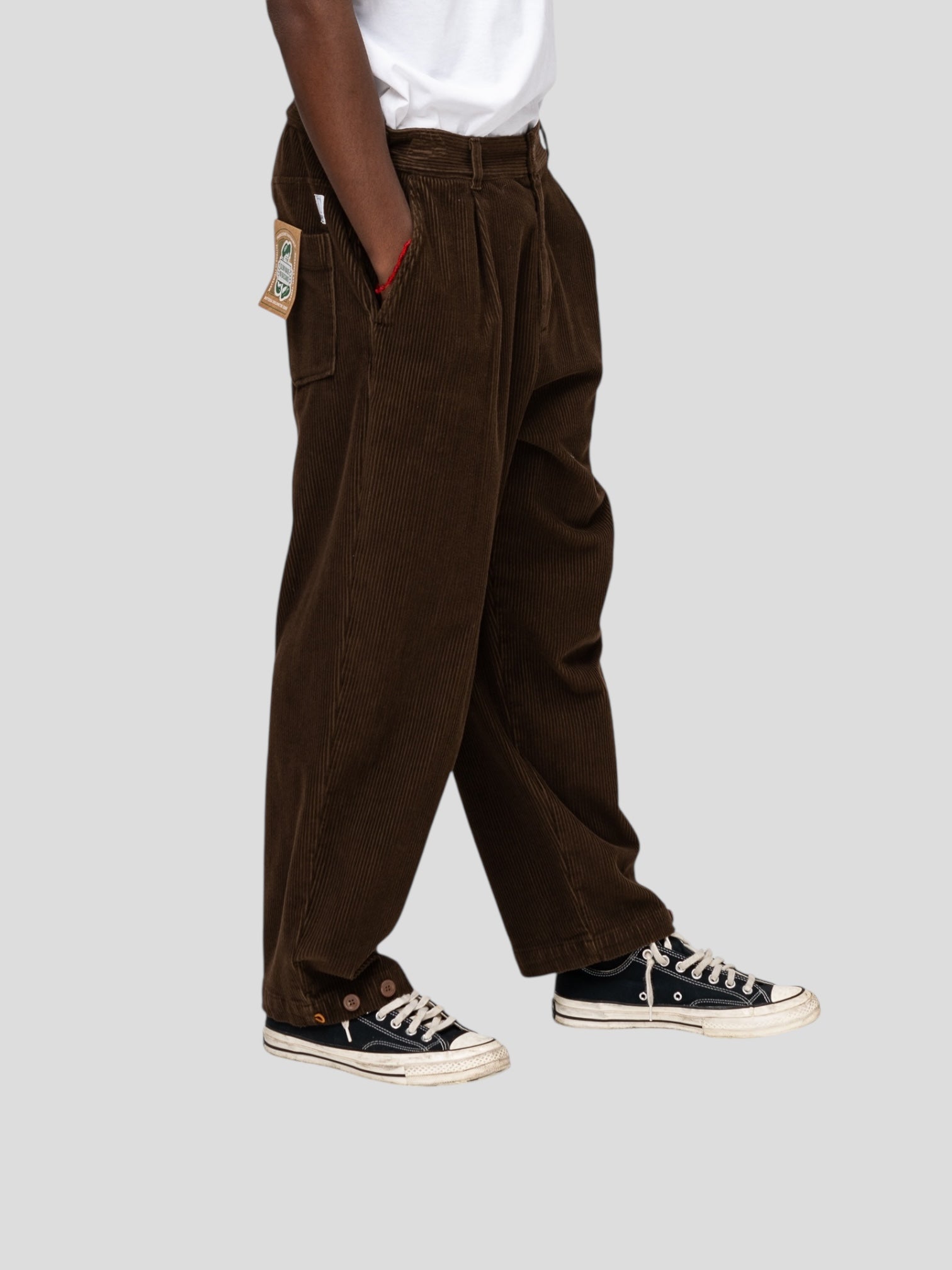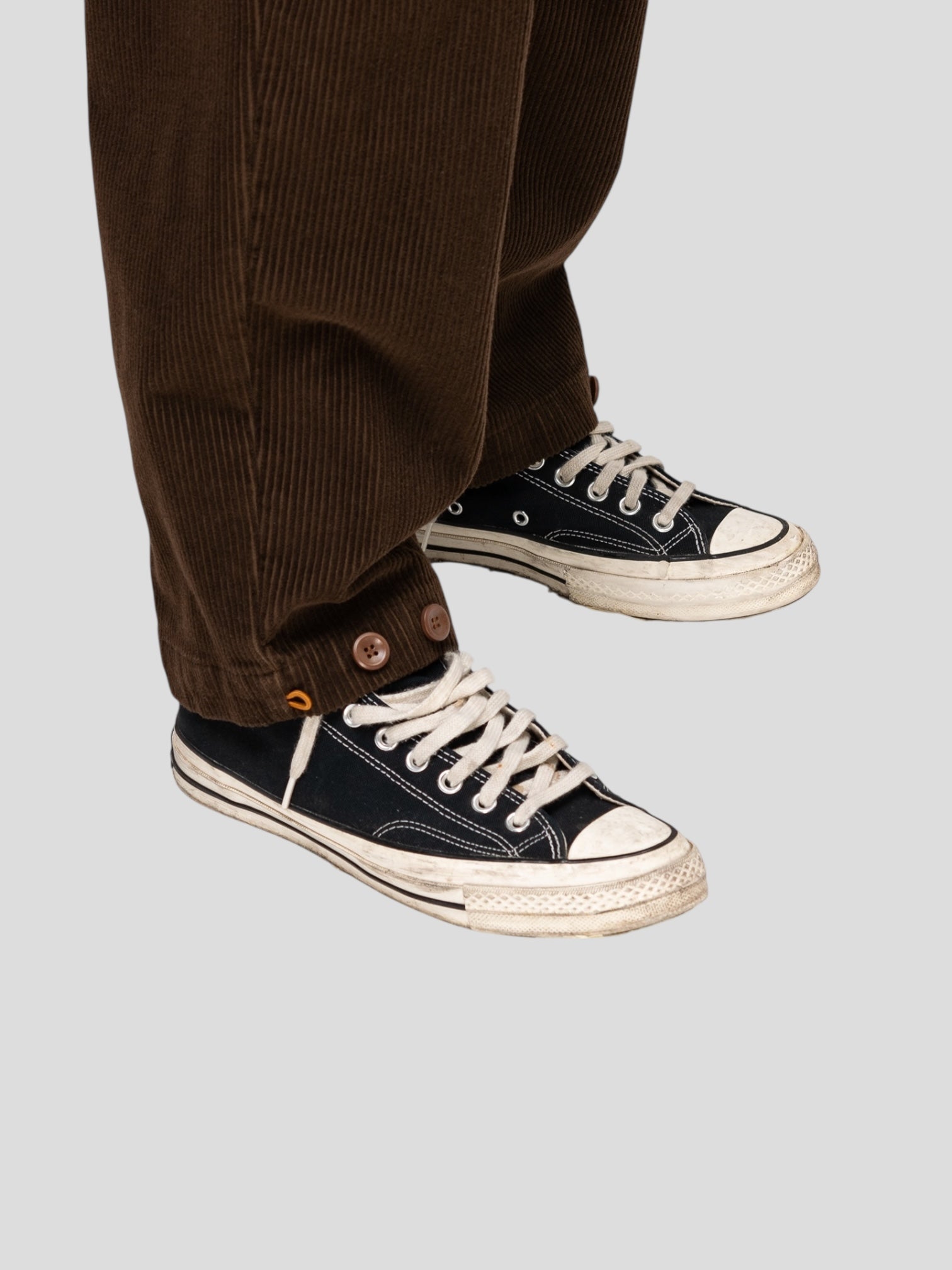 Pantalone dal design essenziale e contemporaneo, realizzato in velluto per una mano morbida ma strutturata. Il colore cacao e i dettagli regolabili in vita e sul fondo gli conferiscono un’attitudine urban e rilassata.
