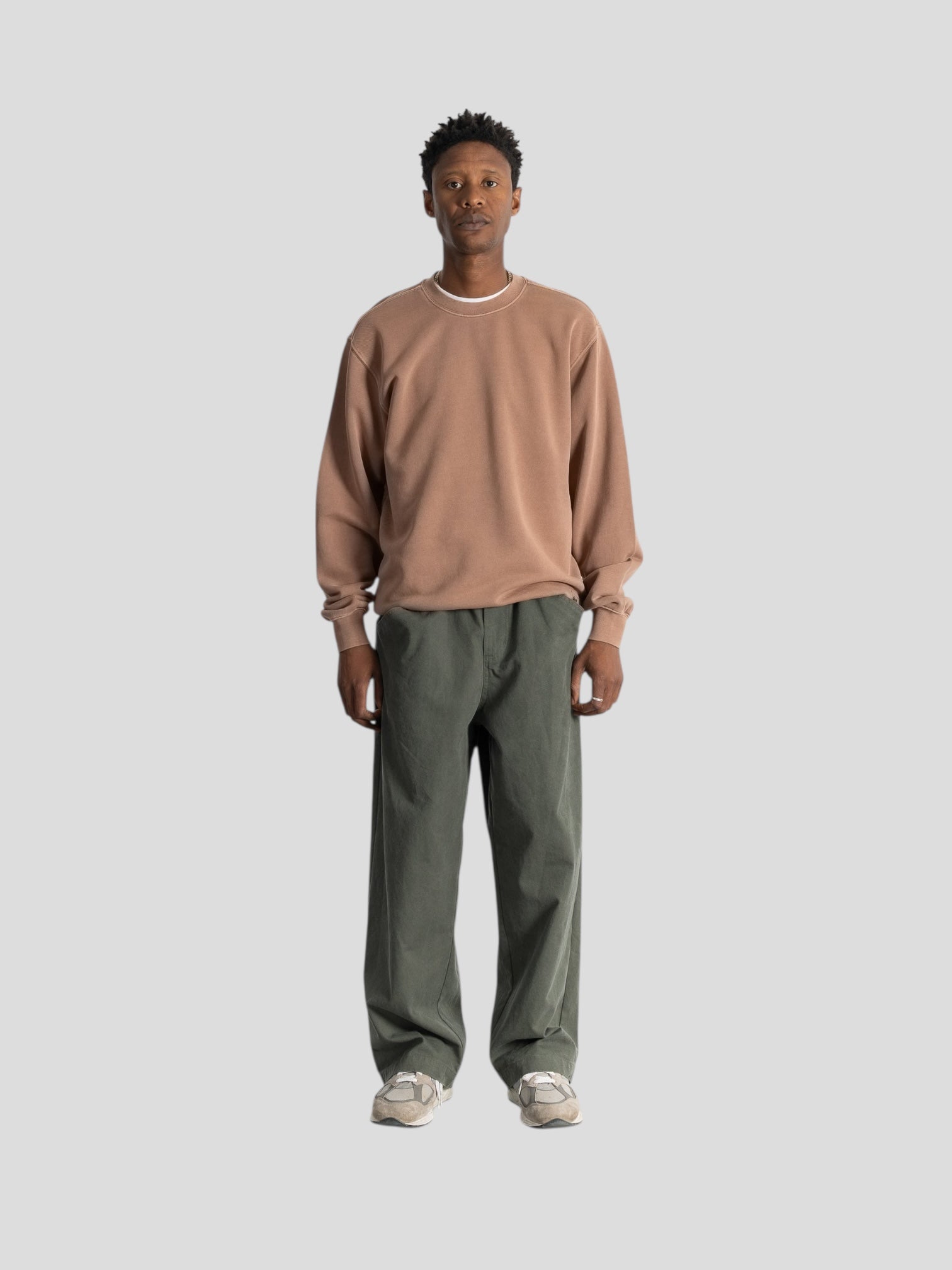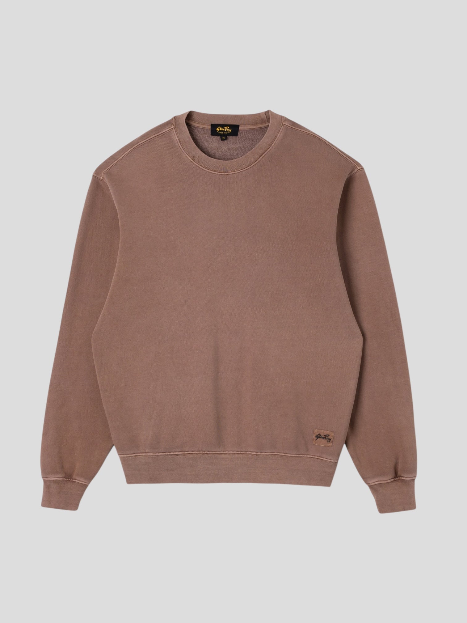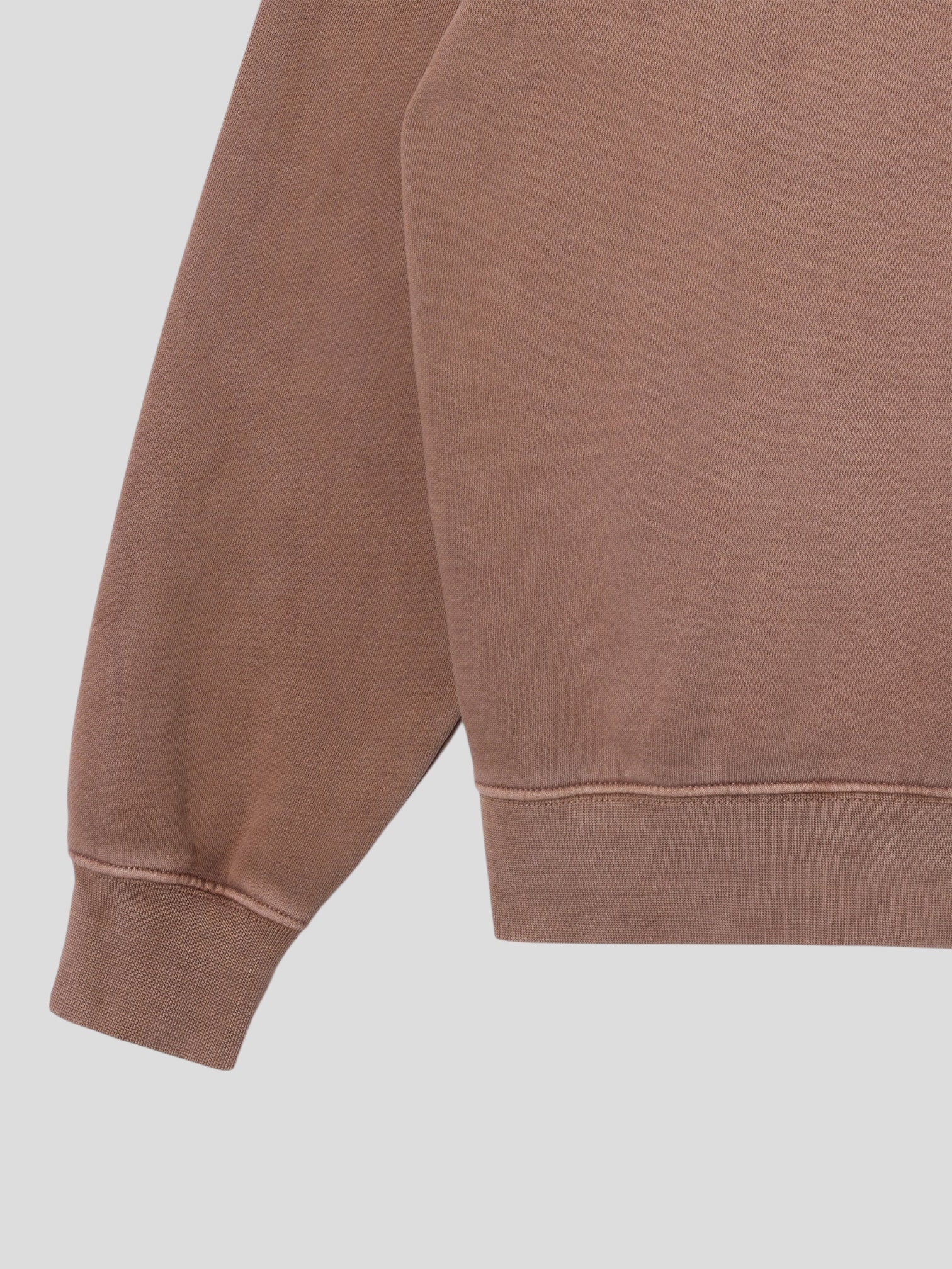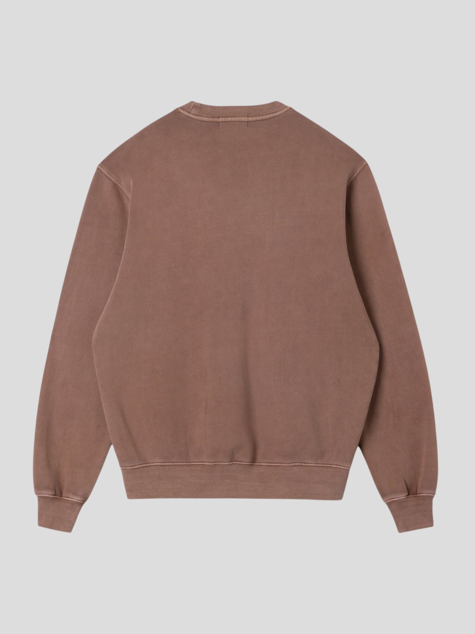 Il Patch Crew in “Washed Acorn” è la felpa classica che sa farsi notare senza urlare. Con un taglio rilassato (relaxed fit) e realizzata in jersey di cotone da **380 gsm**, unisce morbidezza e struttura. La colorazione ottenuta tramite garment dye aggiunge una profondità tonale unica, che evolve col tempo.
