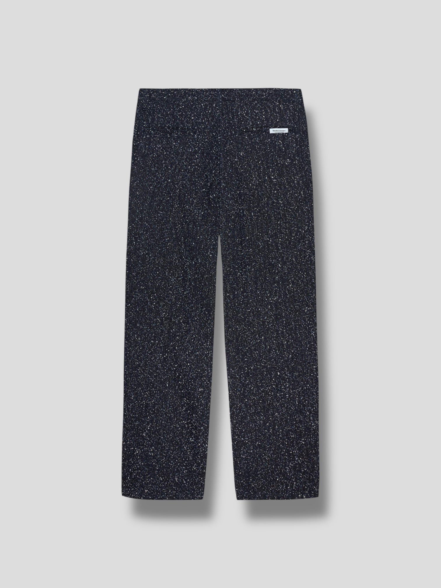 relaxed fit · unisex · mid waist · straight leg · 99 % cotone / 1 % poliestere · front pleats · slanted front pockets · back jet pockets · metal branded button · metal D-ring · woven label New Amsterdam · branded inner waistband NASA